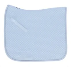 Das Futter der Unterlage ist äußerst schnelltrocknend und feuchtigkeitsregulierend, so dass der Pferderücken trocken und angenehm bleibt. Für eine gute Stoßdämpfung ist die Schabracke gleichmäßig mit einer synthetischen Füllung gefüllt. Die anatomische Form sorgt dafür, dass die Schabracke gut auf den Rücken passt und an Ort und Stelle bleibt. Darüber hinaus sorgen der Leder-PU-Patch und die doppelten Gurtschlaufen für einen stabileren Sitz des Gurtes. Die Anti-Rutsch-Buchstaben auf beiden Seiten des Polsters sorgen für eine stabilere Position des Sattels. Die Verarbeitung mit dunklen, gunmetalfarbenen Kordelpaspeln und Kordelpaspeln in der gleichen Farbe wie das Pad rundet das Pad stilvoll ab.