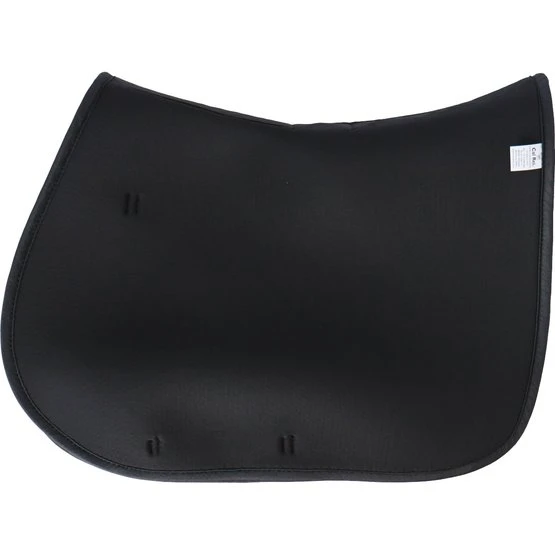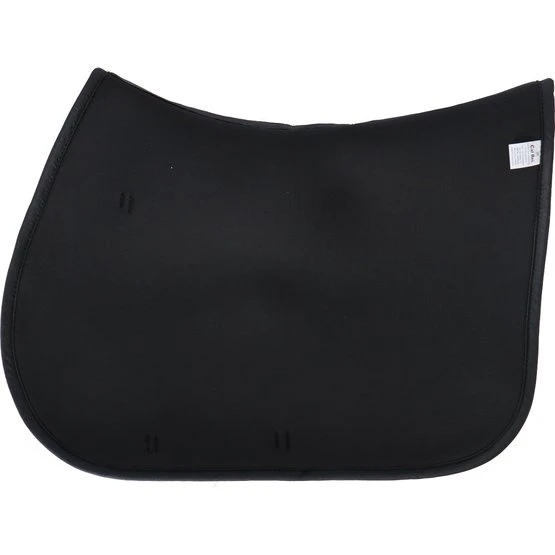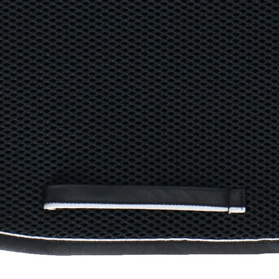 Das 3D-Abstandsmaterial besteht aus Polyesterfasern, die in horizontaler und vertikaler Richtung verwoben sind. Das macht das Material langlebig, belastbar und leicht. Durch die zwei Webrichtungen der Fasern entsteht eine offene Struktur, die sehr belastbar ist. Dadurch bietet es eine gute Druckverteilung und Stoßdämpfung. Ein Vorteil für Reiter und Pferd! Das Material passt sich dem Pferderücken an, springt aber ohne Druck in seinen ursprünglichen Zustand zurück. Dadurch bekommt das Pad keinen Abdruck vom Sattel und die Bewegungen des Pferdes werden gut unterstützt. Die am Pferd anliegende Innenschicht des Pads besteht aus weichen Fasern und ist somit angenehm für das Pferd. Die äußere Schicht ist etwas steifer, damit die Schabracke in Form bleibt und der Reiter gestützt wird.