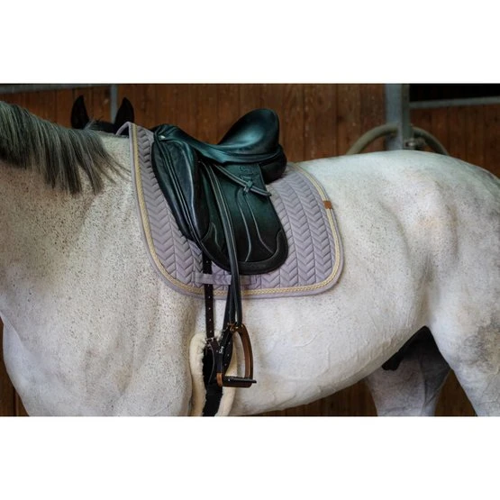 Weiche Schabracke aus 100 % Polyester mit 200 g/m² Polsterung und 8 mm dicker Schaumstoffpolsterung. Mit einer Kordel verziert.
