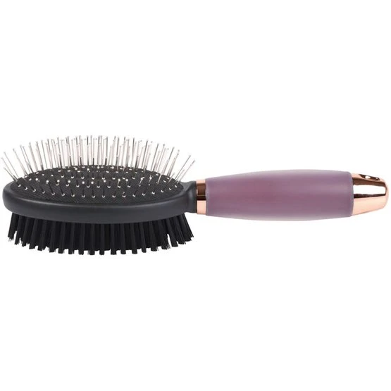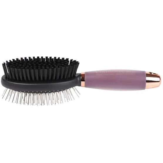 Doppelseitige Bürste mit Nylonborsten auf der einen Seite und Stiften auf der anderen Seite, inklusive feinem Gelgriff.