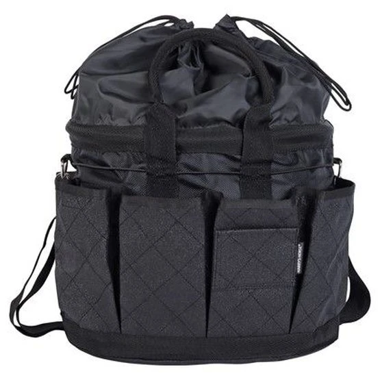 Pflegetasche oval mit vielen Staufächern! Oberteil kann mit Kordelzug geschlossen werden. Die Putztasche hat innen und außen ein verschließbares Fach mit Reißverschluss. Mit abnehmbarem Tragegurt.