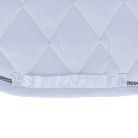 Schabracke mit T/C Futter. Diagonal gesteppt, mit breiter Paspellierung und luxuriöse Kordelumrandung. Füllung aus hochwertigem Polyfill. Gurtschlaufen mit Klettverschlüssen.