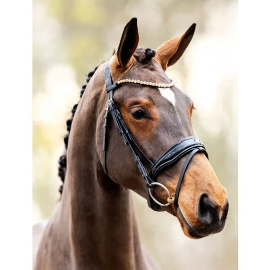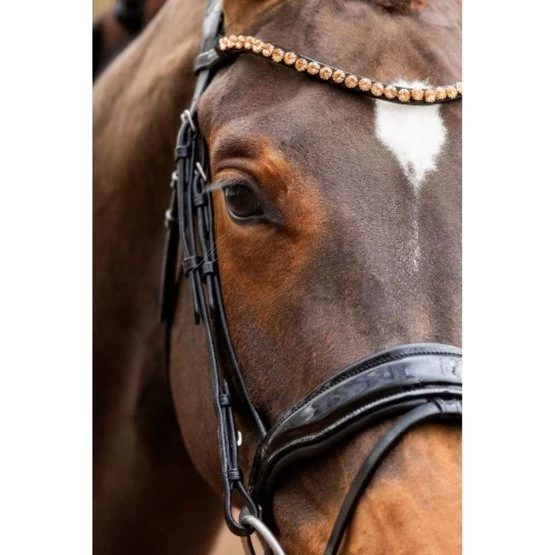 Luxuriöse Trense mit Swarovski-Roségold-Elementen im Stirnband.