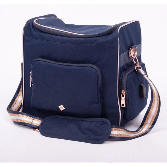 Geben Sie Ihrer Fellpflege mit dieser multifunktionalen Tasche einen Schub. Es verfügt über abnehmbare Innenwände, mit denen Sie Ihr eigenes Layout erstellen können. Benutzen Sie die Tasche für Ihre Putzbürsten, Pferdeausrüstung oder Stallbedarf. Die Tasche verfügt über einen USB-Eingang inklusive USB-USB-Kabel für Powerbanks. Keine leeren Batterien mehr! Der Schultergurt ist mit Glitzereinsätzen versehen, die für zusätzlichen Glanz sorgen. Die Tasche kann mit dem Riemen auf der Rückseite am Fahrrad oder mit den Metallringen an den Seiten an unserem Sattelcaddy IRHCarry Light aufgehängt werden.