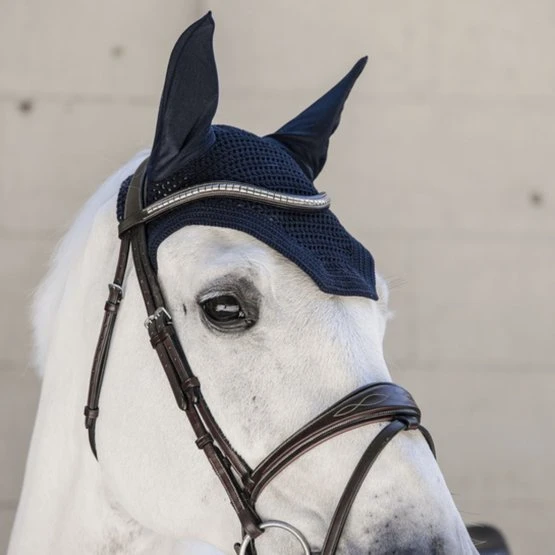 Neben unseren Standard-Fliegenmützen haben wirnun ein Modell entwickelt, das eine Kombination des äußerst beliebten amerikanischen Looks und der Kompetenz von Kentucky Horsewear darstellt. Die Fliegenmütze Wellington schützt die Ohren des Pferdes beim Reiten gegen Fliegen. Handgestrickt für bessere Haltbarkeit, sieht die Fliegenmütze sehr modisch und professionell aus. Das Material um die schalldichten Ohren ist dehnbar und dünn. Daneben ist das Genickstück verlängert, so dass nichts rutschen kann. Es liegt ganz an Ihnen, ein eigenes Logo besticken zu lassen, da die Fliegenmütze selber kein sichtbaresLogo auf der Stirn hat. Die Fliegenmütze ist einfach zu pflegen, da sie speziell so produziert ist, dass sie bei 30° C in der Maschine gewaschen werden kann (kein Trockner).
