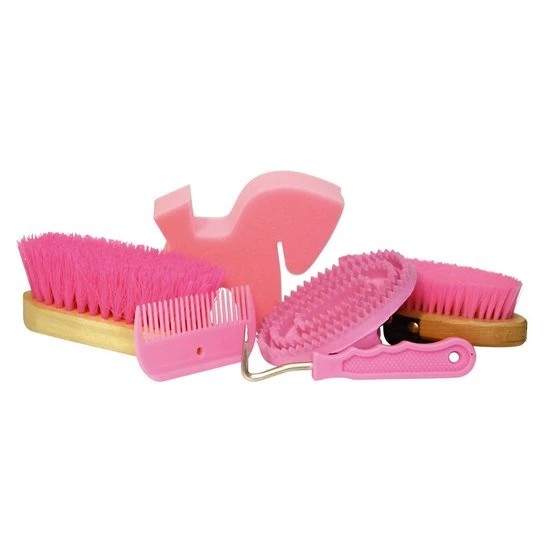Alles übersichtlich verpackt im Klarsichtrucksack bestehend aus: • Kunststoff-Rucksack • Schwamm • Mähnenbürste • Mähnenkamm • Gummistriegel oval • Kardätsche • Hufkratzer