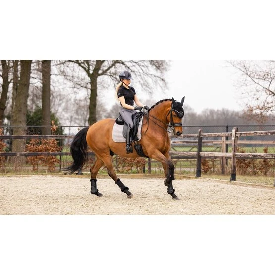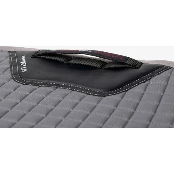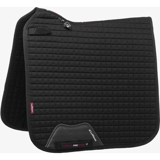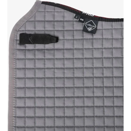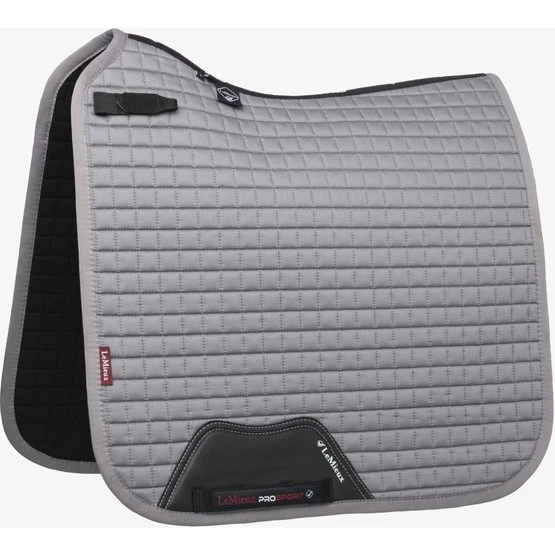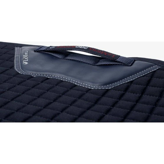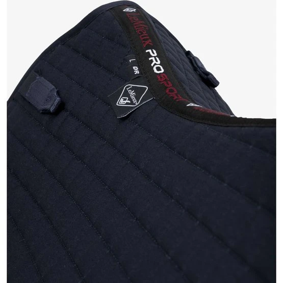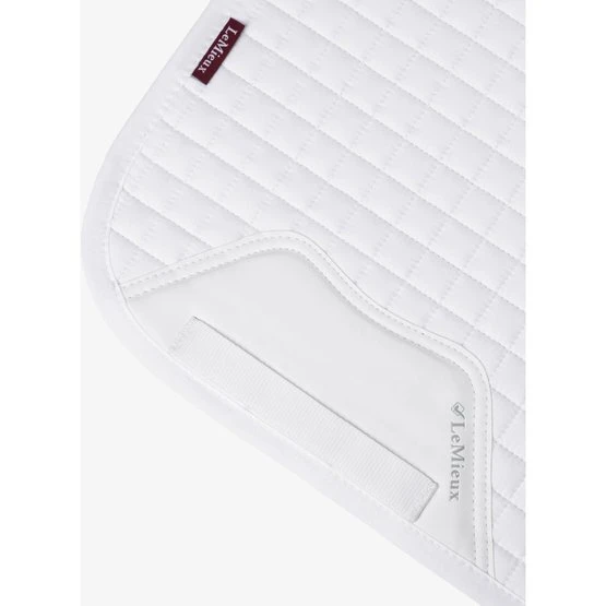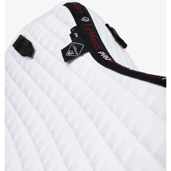 Dieses wunderschöne Dressursattelkissen aus Baumwolle setzt neue Maßstäbe in Bezug auf Stil und Komfort. Vervollständigen Sie Ihren LeMieux-Look in Kombination mit passenden Polobandagen und Ohrnetzen. Es gibt Farben für die meisten Pferde und Geschmäcker. Entwickelt für eine breite Palette von Dressursätteln mit hohem Widerrist und elastischen D-Ring-Laschen. Das hoch atmungsaktive Baumwollfutter absorbiert und reguliert den Schweiß unter dem Sattel und ist angenehm für das Pferd. Die Gurtschlaufe hat drei innere Schlaufen, um den Gurt zu befestigen.