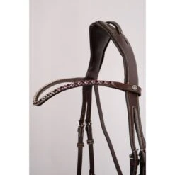 Alle Montar-Stirnbänder können dank eines Montar-Druckknopfs auf jeder Seite leicht gewechselt werden, auch wenn die Trense in Gebrauch ist.
