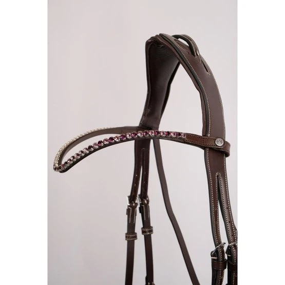 Bringen Sie Ihr Pferd zum Strahlen mit diesem geschwungenen Kristall-Stirnband mit einer Reihe funkelnder Amethyst-Pflaume-Kristallsteine. Das Stirnband ist mit Druckknöpfen mit Montar-Logo ausgestattet.