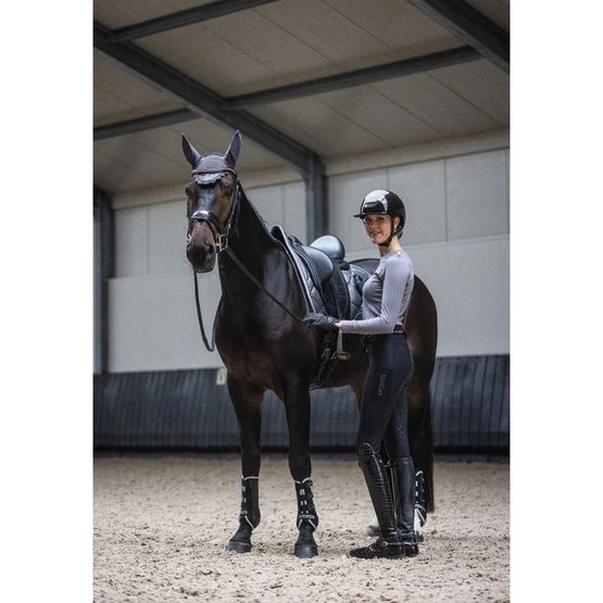 Unser Charmer-Dressur-Sattelpolster verfügt über ein Rautenmuster mit durchgehendem Glitzermuster.