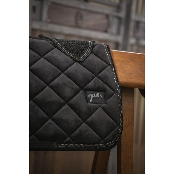 Die neue Schabracke PENELOPE Strass ist mit einem Strassstein verziert und mit Flechtwerk und dem Pénélope-Logo verziert. Passende Ohrennetze sind erhältlich. Zusammensetzung: Oberstoff, Füllung und Futter: 100 % Polyester. Erhältlich in Schwarz oder Marineblau. Größe Full: Passend für eine Vielzahl von Pferden, sowie D-Ponys und große C-Ponys.